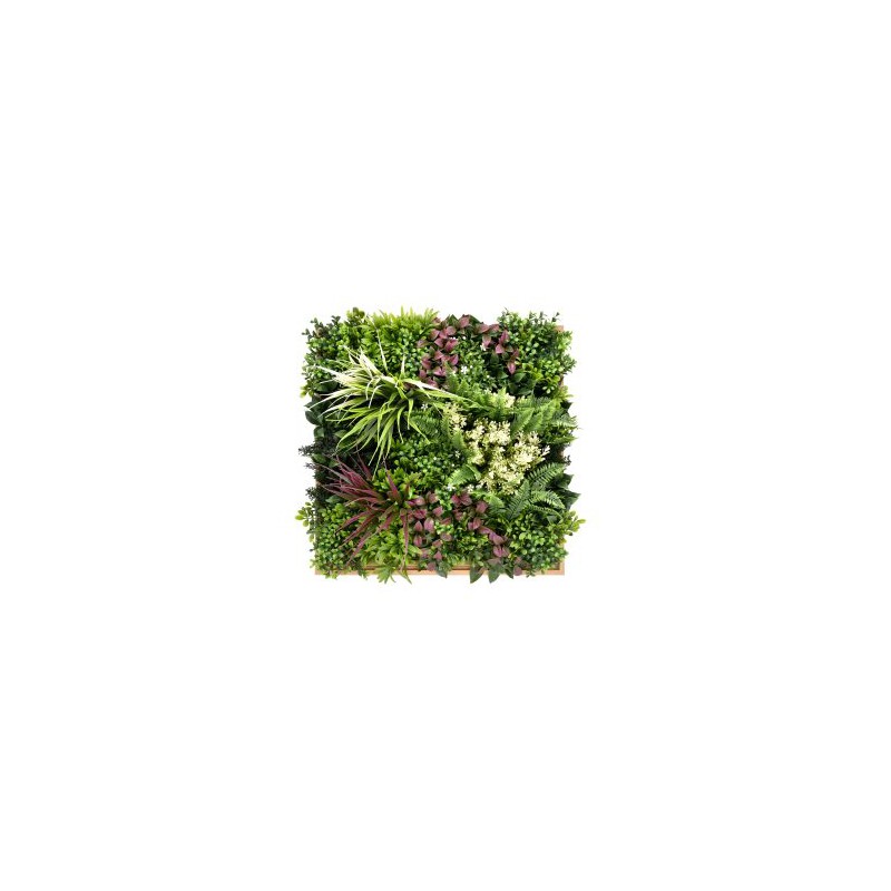 El jardín vertical artificial, consiste en una instalación adherida a una pared vertical que se cubre con una amplia gama de diferentes especies de plantas y hojas sintéticas